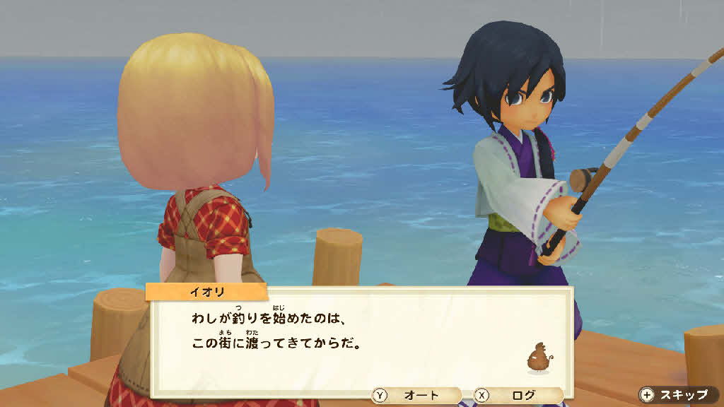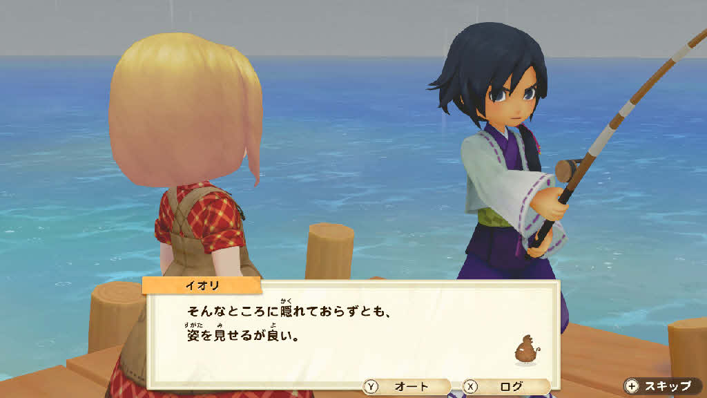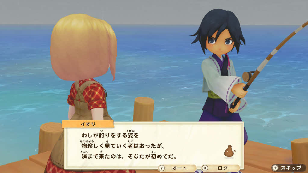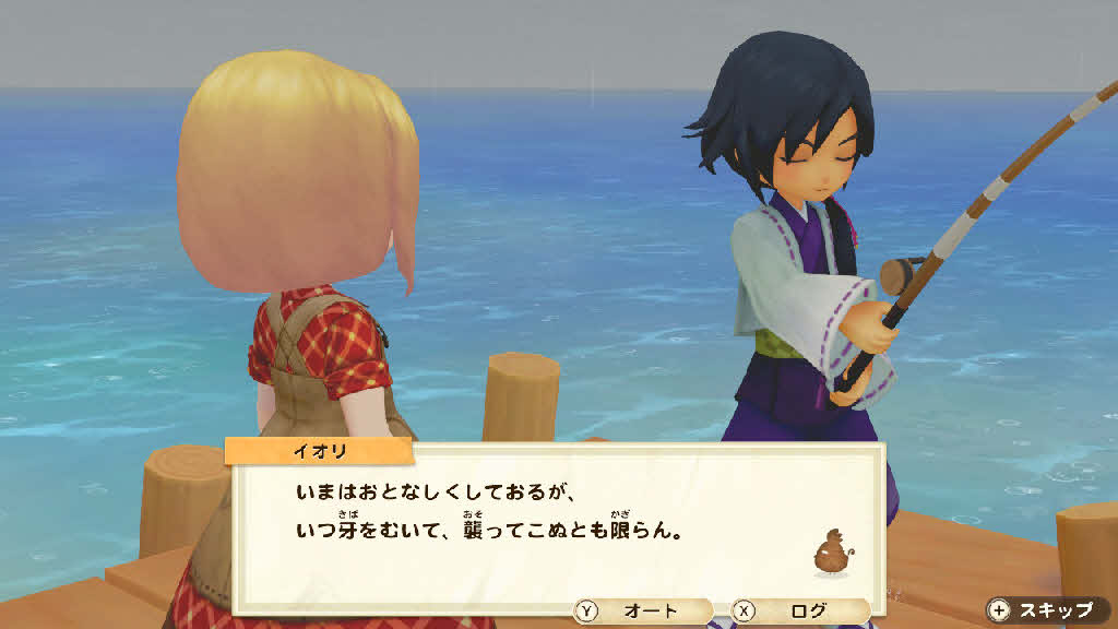 イオリは桟橋で釣りの最中です。