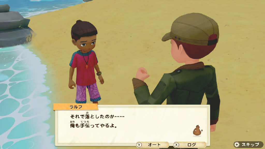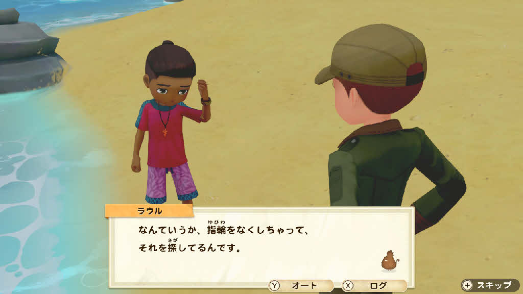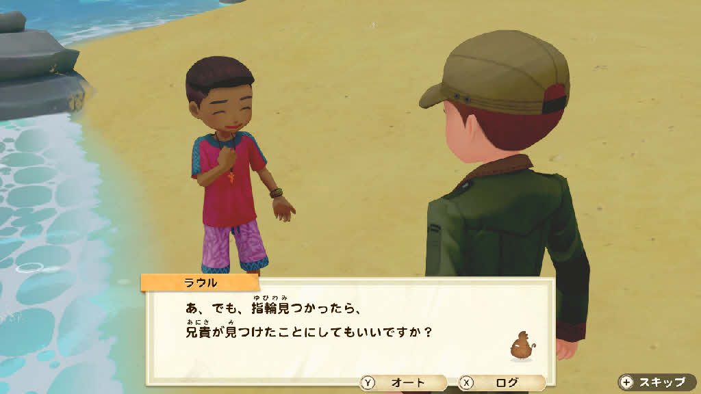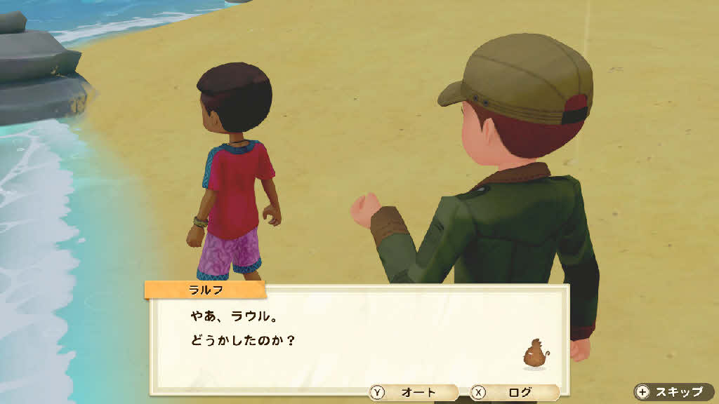 ラウルは浜辺で何かしているみたい。